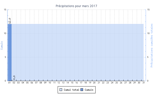 | Jour | Température | Vent | Pluie | |||