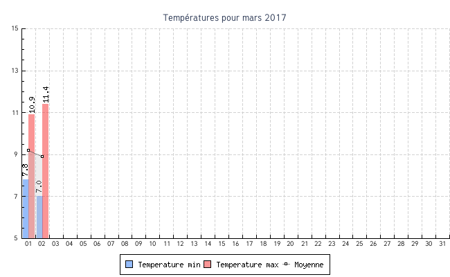 | 02 | 7.0 °C | 11.4 °C | 8.9 °C | 8.6 km/h (30.6 km/h) | SO |
