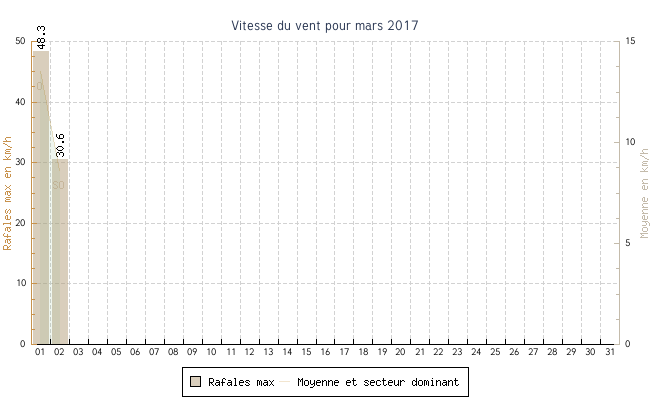 | min | max | moy | Vitesse (rafales) | Secteur | ||